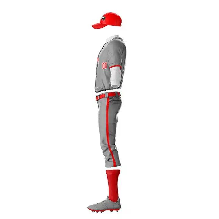 Customized Team Name Number Baseball Uniform Men’s Baseball Uniform Suit Red Baseball & Softball Wear Men Shirts & Tops Durable